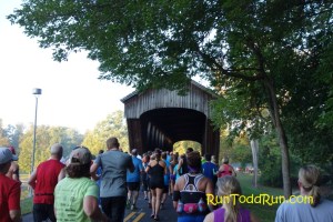 The race then wound through its namesake, Mill Race Park.  The park was beautiful at that time in the morning, with sunlight streaming through the trees, and fog rising from the ponds.  It was really a great start to the race.  There was a rather narrow stretch right after the start, but it was nothing compared to some of the Disney races we have been in.