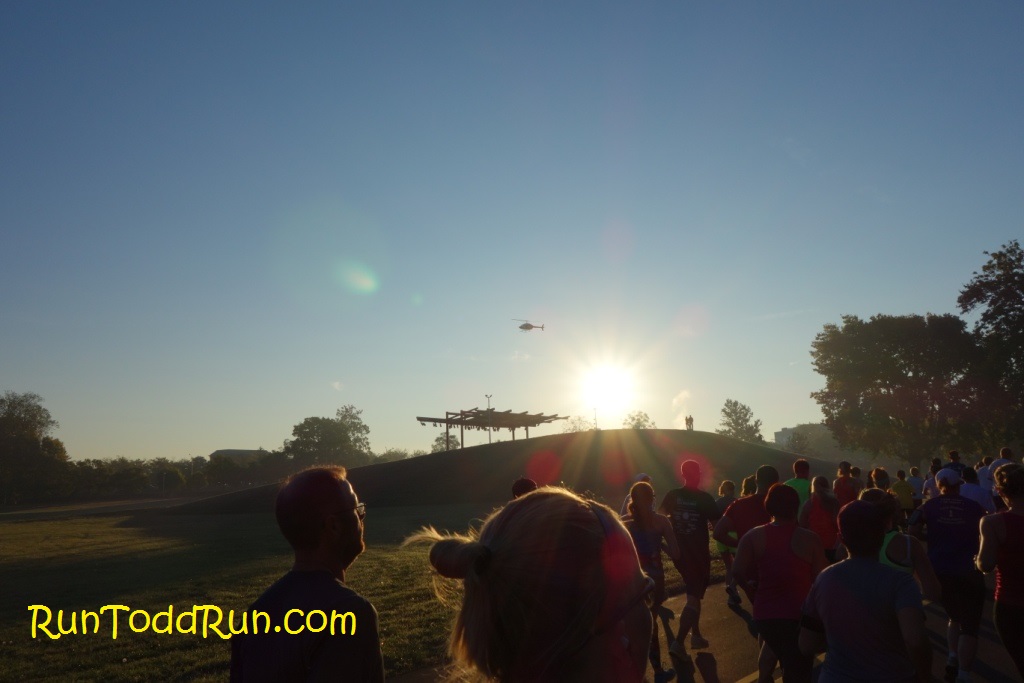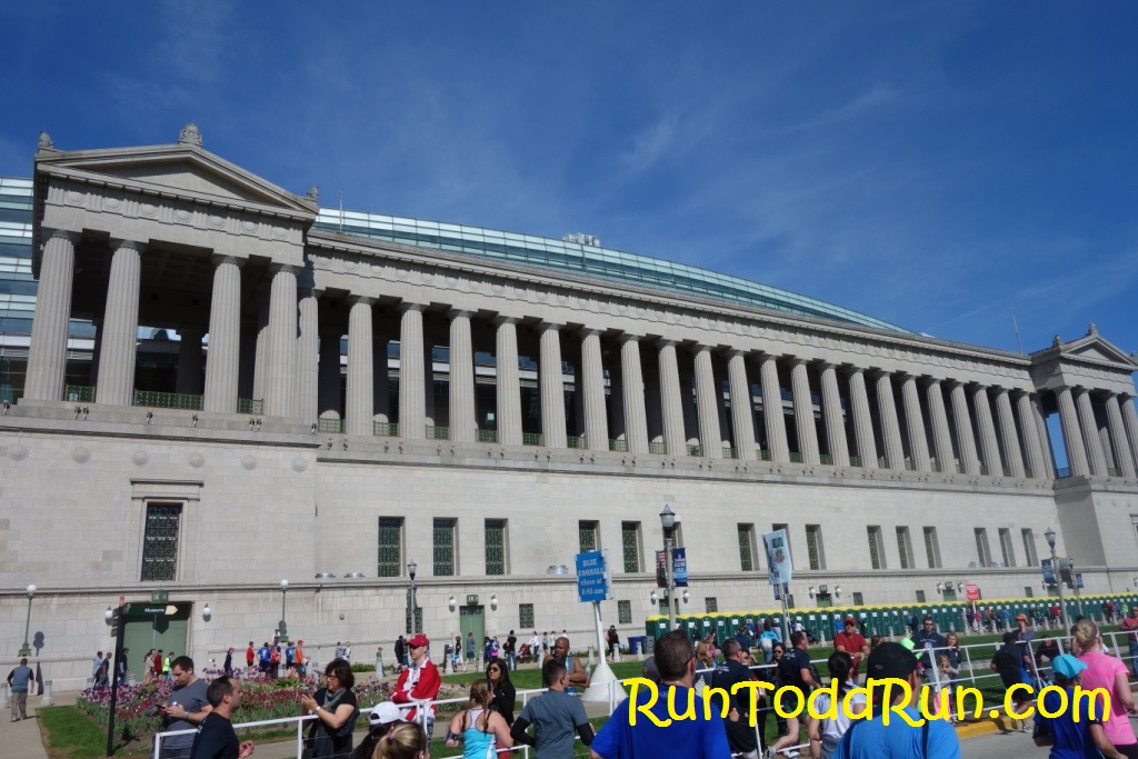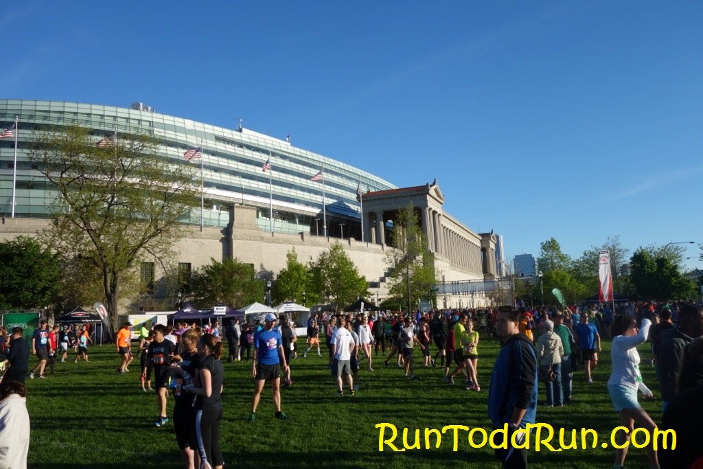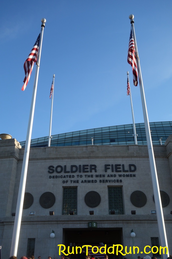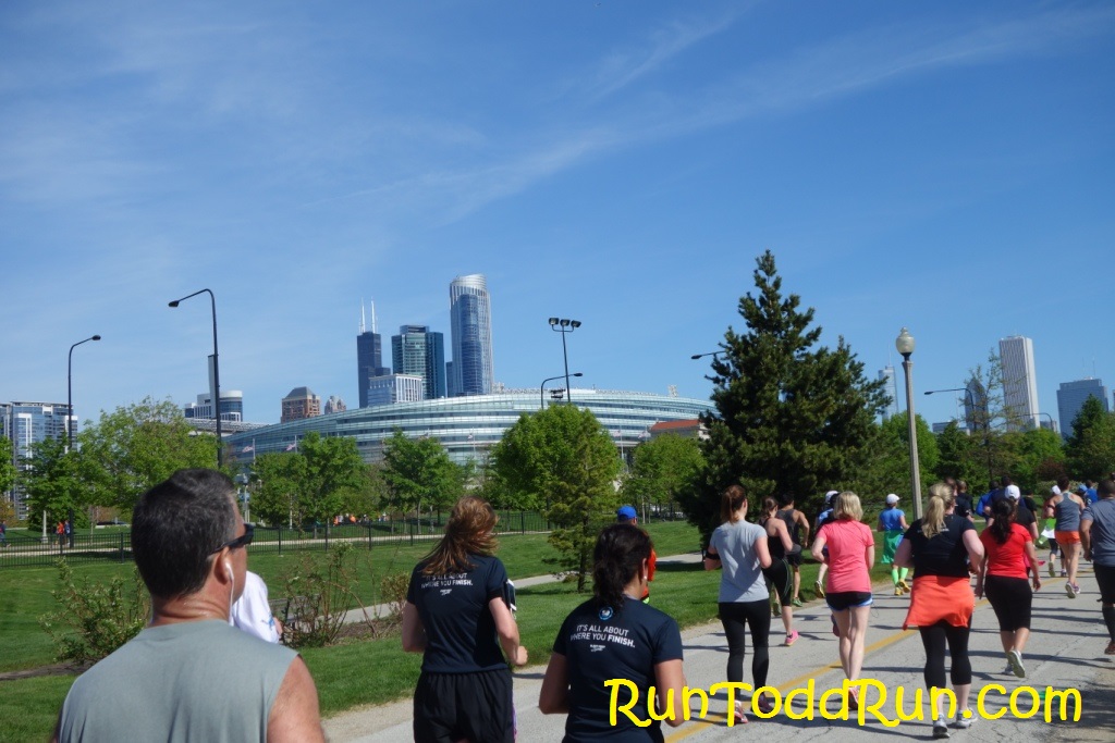 There was an option to have race-morning packet pick-up (for some extra $), which really helped us out-of-towners.  We arrived in town late the night before the race, checked into our hotel, which was near the start, and got some rest.  The next morning we woke up bright and early for the run.  It was a beautiful morning, and it was nice to be able to walk to the start line just outside Solider Field. The day would get a bit warmer, but the morning gave us some great running weather.