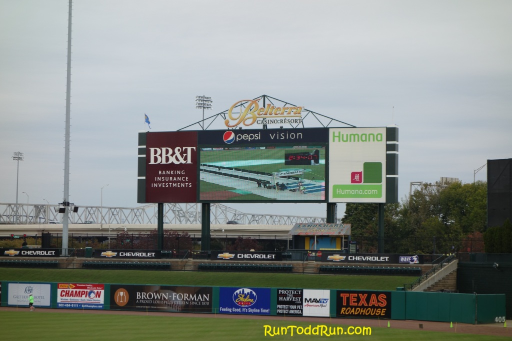 As we exited the park, we had about 4 miles left.  The finish was at Papa John’s Cardinal Stadium, home of University of Louisville football.  This would be the first football stadium we got to run through, after having previously run through minor and major league baseball stadiums.