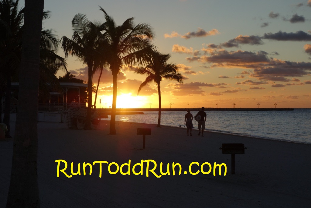 We came to the keys the weekend before, and spent the week enjoying all they had to offer.  This also gave us time to attempt to get adjusted to the heat.  My wife, Joyce, and I ran a couple of times during the week to see what it was like in the heat.  We knew it was going to be a challenge, just like it was in Disneyland, maybe even more so.  I was just glad I was not running the marathon.  We picked up our packets early on Thursday before the Saturday race while we were in Key West.  In a nice twist, they provided hats in addition to t-shirts for all the runners.