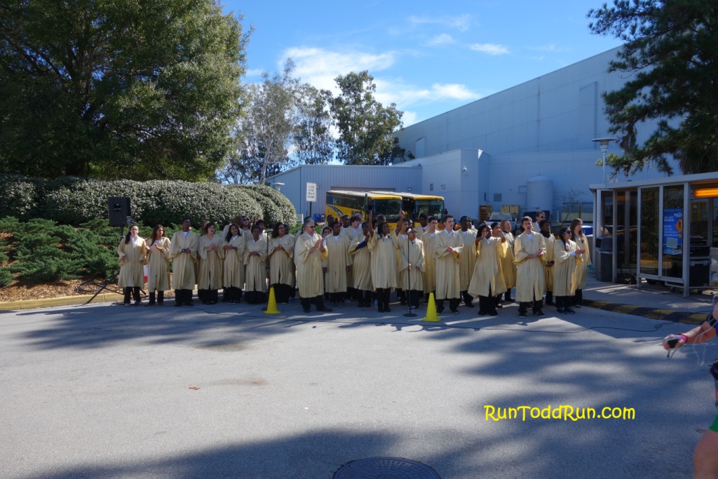 Our 2:30 am wake up brought us temps in the mid 50s.  As usual we took one of the first monorails to the Race Retreat outside Epcot.  This year, there were 16 corrals instead of the 8 the year before.  This seemed to make the cattle drive to the start line much smoother.  It also seemed to thin out the course in the first few miles.  Not so much in the narrow miles from 6-8 though.