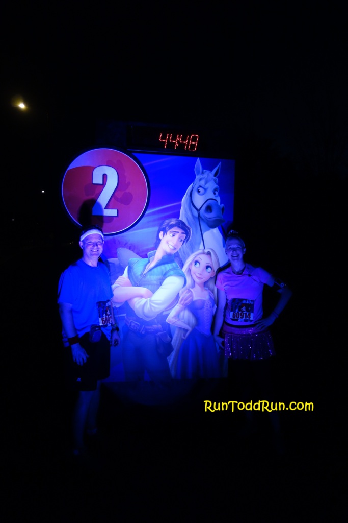 We arrived early to get in a couple of miles before the race, since we were scheduled to run 15 miles this weekend for our WDW Marathon training.  We were not as early as we wanted to be, so we cut it to 1.5.  Even then, we were not able to get a restroom break before the start since the lines were so long by that point.  We decided we would just hit some along the way.  Not the best choice.