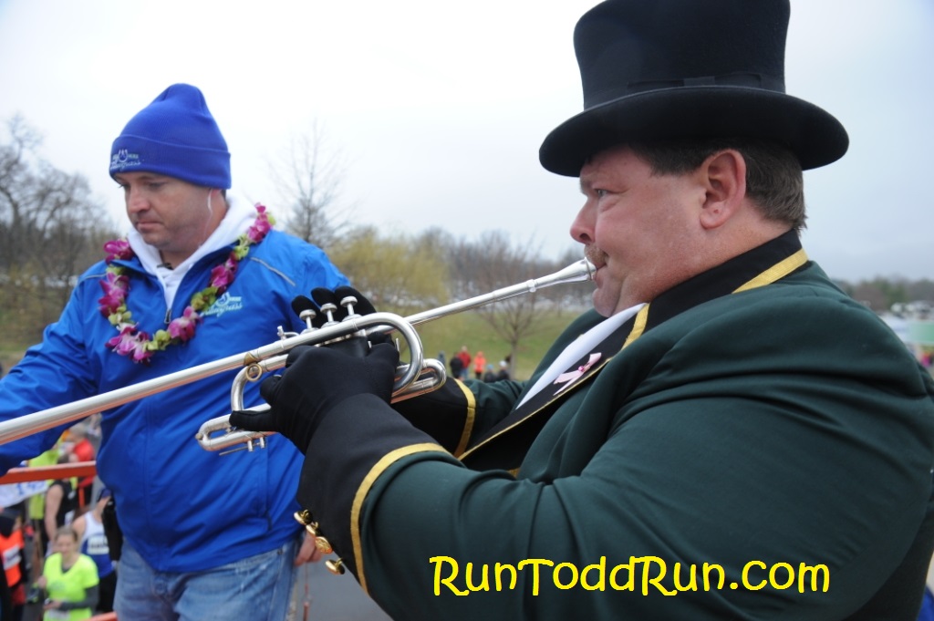As for the race,  I must say I was a bit worried as the weekend approached.  The weather man was calling for high temps in the mid-80s, and I was having flashbacks of the heat of the Dumbo Double Dare.  However, the morning started out in the upper 50s, and we could not have asked for better weather for the first part of the race.    The race started in downtown Columbus, just outside the Cummins Corporate Headquarters.  (Cummins is the world’s foremost manufacturer of diesel engines – which explains the medal you will see later).