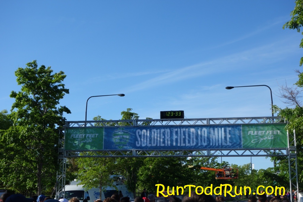 There were 18 Corrals or so, and we started in Corral 9, which gave us a good view of the start line, based on how they arranged the corrals on two different streets.  The race, as you may expect, was centered on honoring those who gave all serving our country, and those who continue to serve (Soldier Field and Memorial Day go well together, obviously).  The ceremonies at the start were very moving, and about 20 minutes after the first corral went off, it was our turn.